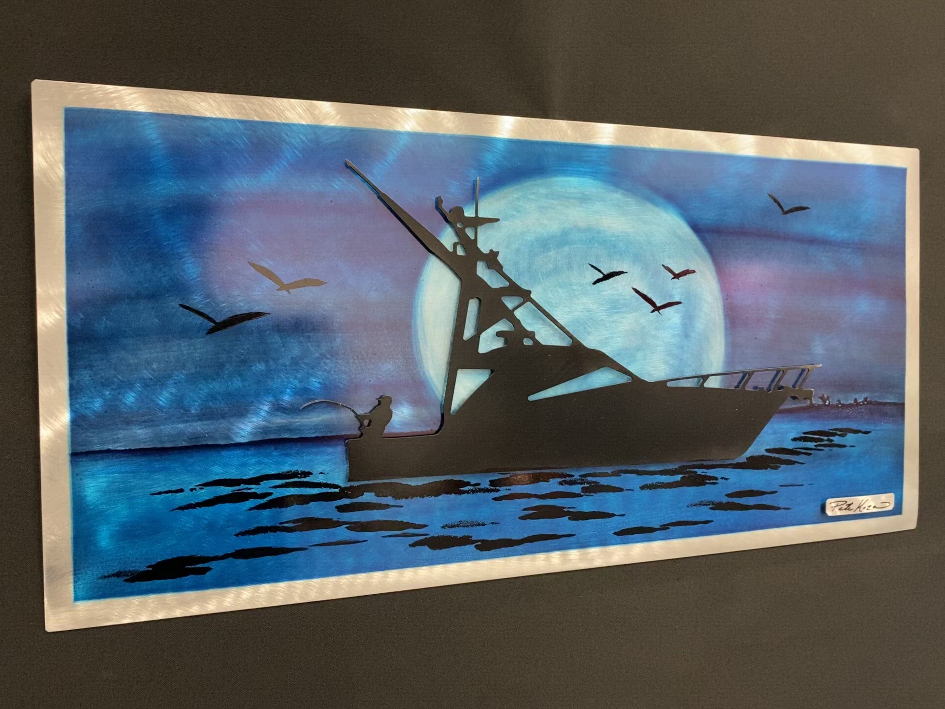 This amazing piece of metal art is designed to hang horizontal. Made out of high grade aluminum with a dynamic mounting bracket assembled on the back, your piece of art is ready to hang. This art is clear coated and can hang indoor or outdoor but must avoid constant and direct sunlight. It is very durable and will be unaffected by moisture.