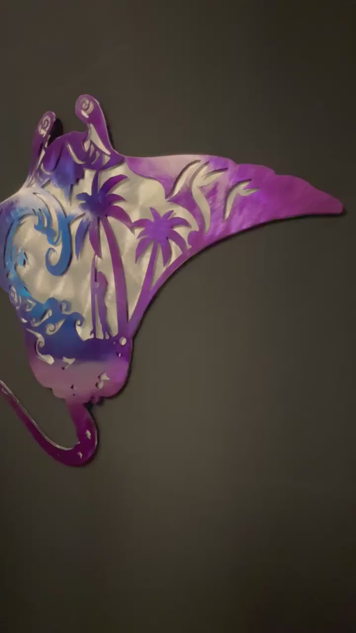 Check out this Purple Ocean Stingray by Pete Koza Metal Art Made out of high grade aluminum with a dynamic mounting bracket assembled on the back, your piece of art is ready to hang. This art is clear coated and can hang indoor or outdoor but must avoid constant and direct sunlight. It is very durable and will be unaffected by moisture.