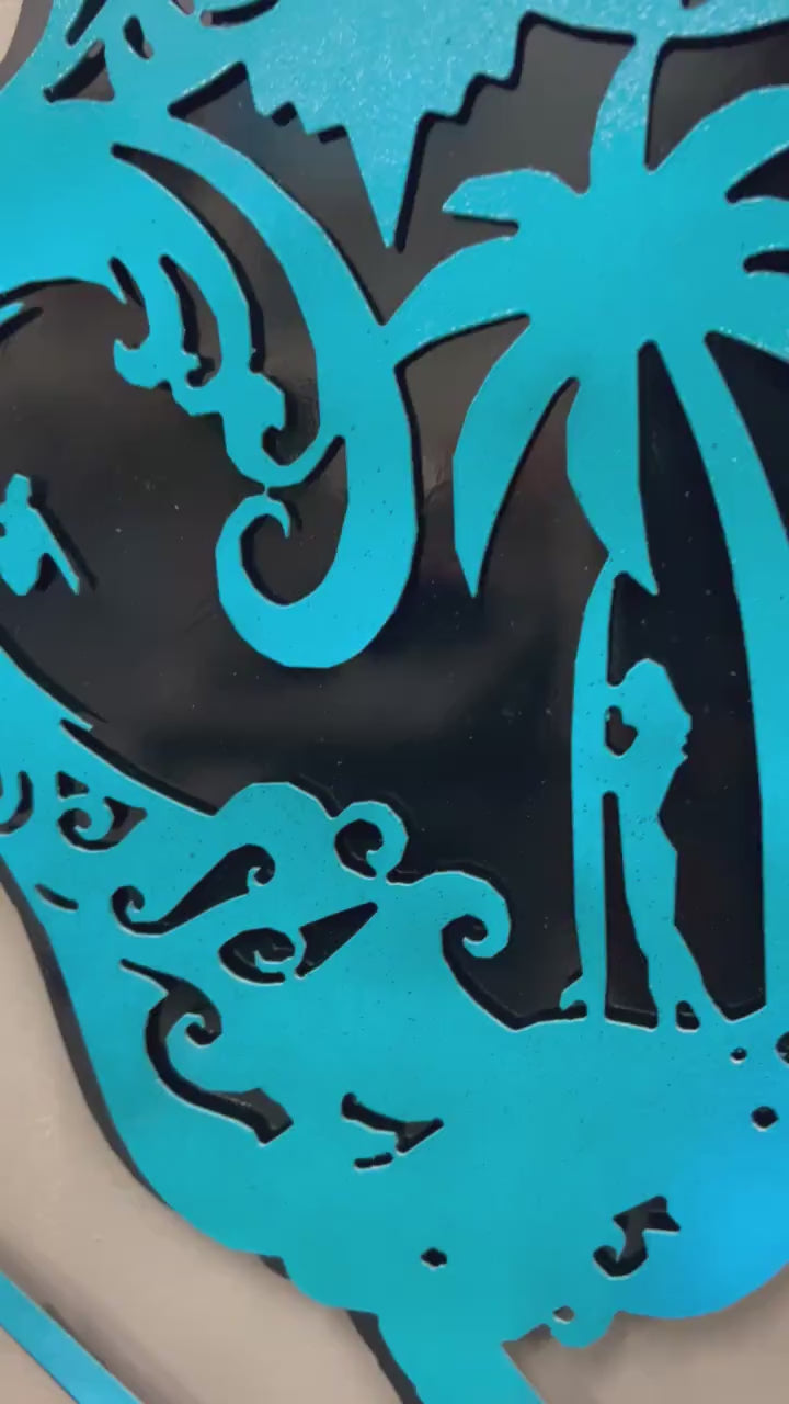 Check out this Teal Ocean Stingray by Pete Koza Metal Art Made out of high grade aluminum with a dynamic mounting bracket assembled on the back, your piece of art is ready to hang. This art is clear coated and can hang indoor or outdoor but must avoid constant and direct sunlight. It is very durable and will be unaffected by moisture.