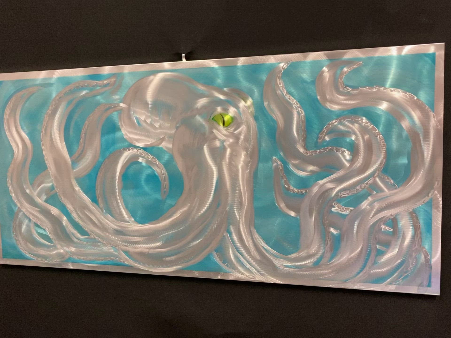 This amazing piece of metal art is designed to hang horizontal. Made out of high grade aluminum with a mounting bracket assembled on the back, your piece of art is ready to hang. This art is clear coated and can hang indoor or outdoor but must avoid constant and direct sunlight. It is very durable and will be unaffected by moisture.